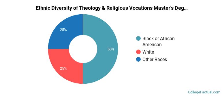 The following table and chart show the ethnic background for students who recently graduated from California Baptist University with a master's in theology & religious vocations.