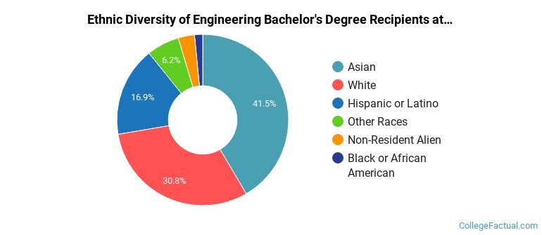 During the 2021-2022 academic year, 65 students graduated with a bachelor's degree in engineering from Caltech. About 46% were men and 54% were women.