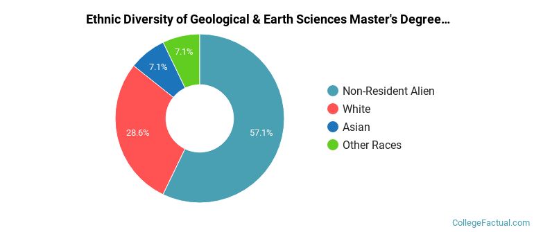 During the 2021-2022 academic year, 14 students graduated with a master's degree in geology from Caltech. About 64% were men and 36% were women.