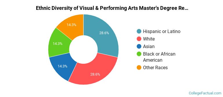 The following table and chart show the ethnic background for students who recently graduated from California State University - East Bay with a master's in visual & performing arts.