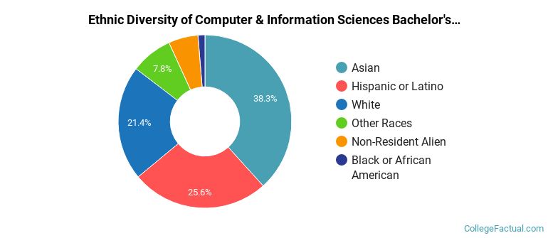 The following table and chart show the ethnic background for students who recently graduated from California State University - Fullerton with a bachelor's in computer & information sciences.