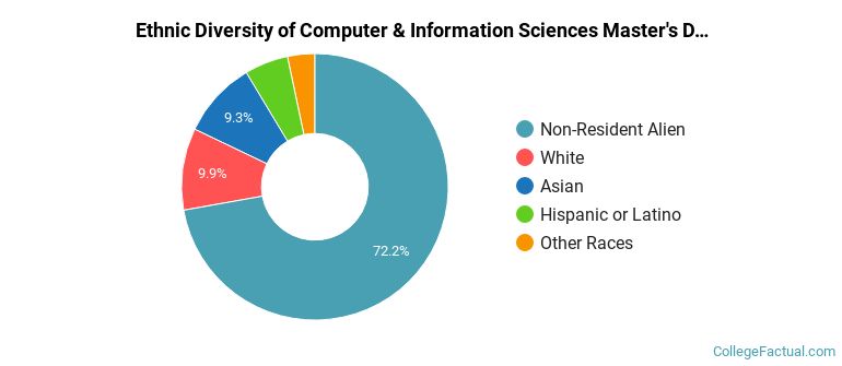 The following table and chart show the ethnic background for students who recently graduated from California State University - Fullerton with a master's in computer & information sciences.