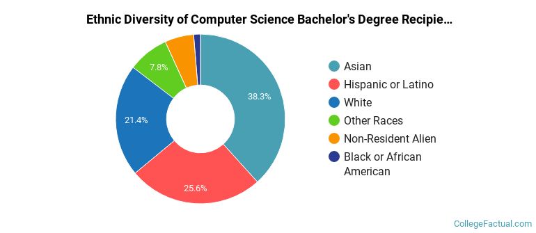 The following table and chart show the ethnic background for students who recently graduated from California State University - Fullerton with a bachelor's in compsci.