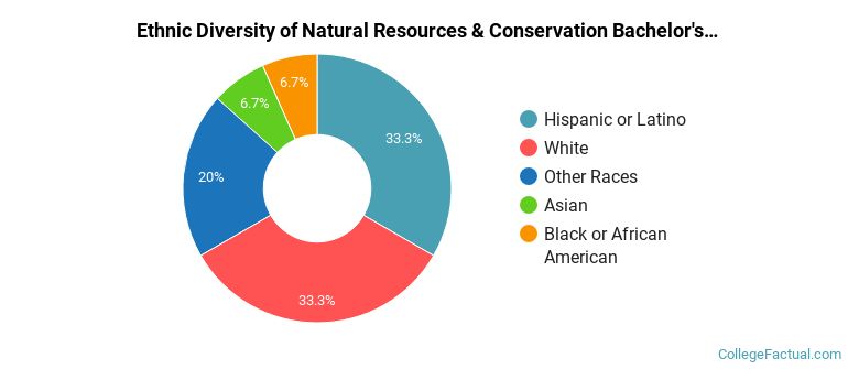 The following table and chart show the ethnic background for students who recently graduated from Chapman University with a bachelor's in natural resources & conservation.