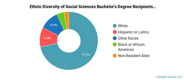 The following table and chart show the ethnic background for students who recently graduated from Flagler College - St Augustine with a bachelor's in social sciences.
