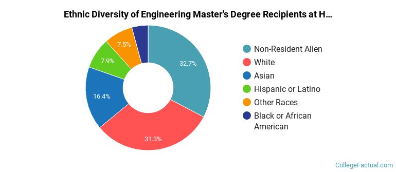 In 2022, 214 students received their master’s degree in engineering from Harvard. This makes it the #64 most popular school for engineering master’s degree candidates in the country.
