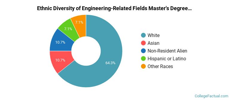 The following table and chart show the ethnic background for students who recently graduated from Kettering University with a master's in engineering-related fields.