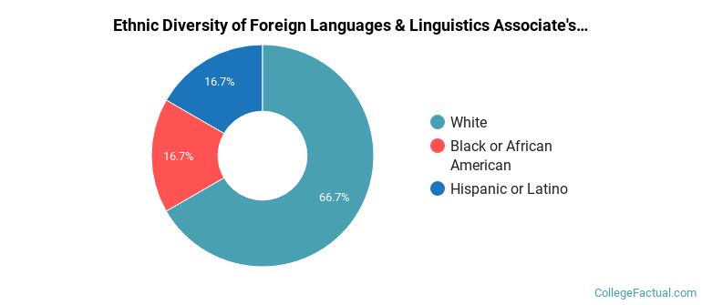 The following table and chart show the ethnic background for students who recently graduated from Middle Georgia State University with a associate's in foreign languages & linguistics.