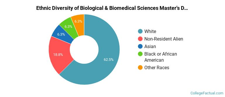 The following table and chart show the ethnic background for students who recently graduated from Minnesota State University - Mankato with a master's in biological & biomedical sciences.