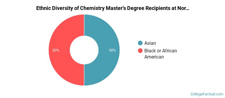 During the 2021-2022 academic year, 7 chemistry majors earned their master's degree from North Carolina Central University. Of these graduates, 43% were men and 57% were women.