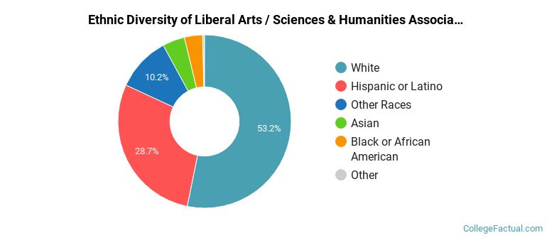 The following table and chart show the ethnic background for students who recently graduated from Paradise Valley Community College with a associate's in liberal arts / sciences & humanities.