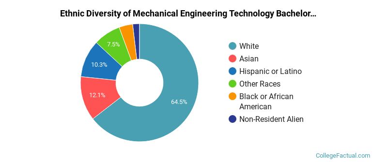 The following table and chart show the ethnic background for students who recently graduated from Rochester Institute of Technology with a bachelor's in me tech.