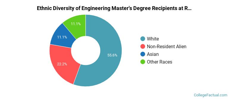 The majority of master's degree recipients in this major at Rose - Hulman Institute of Technology are white. In the most recent graduating class for which data is available, 67% of students fell into this category.