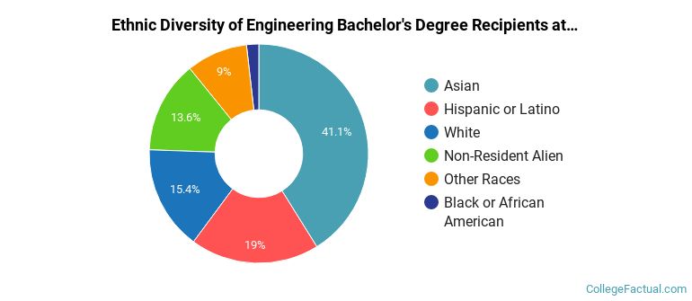 Of the 857 engineering students who graduated with a bachelor's degree in 2021-2022 from San Jose State, about 77% were men and 23% were women.