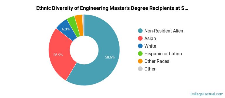 During the 2021-2022 academic year, 633 students graduated with a master's degree in engineering from San Jose State. About 61% were men and 39% were women.