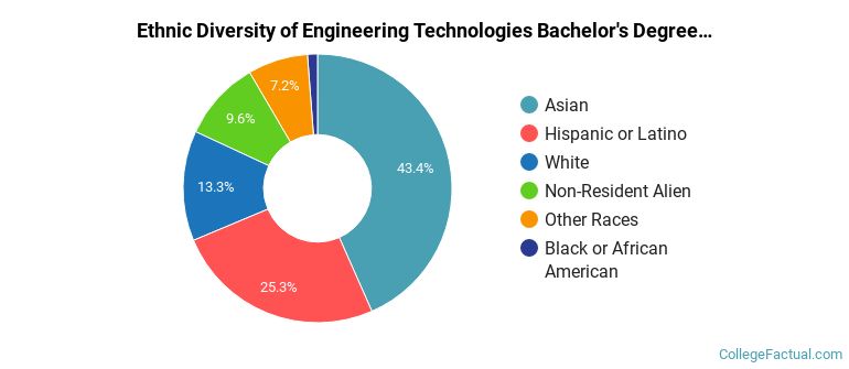 The following table and chart show the ethnic background for students who recently graduated from San Jose State University with a bachelor's in engineering tech.