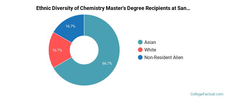 We've gathered data and other essential information about the program, such as the ethnicity of students, how many students graduated in recent times, and more. We've also included details on how San Jose State ranks compared to other colleges offering a major in chemistry.