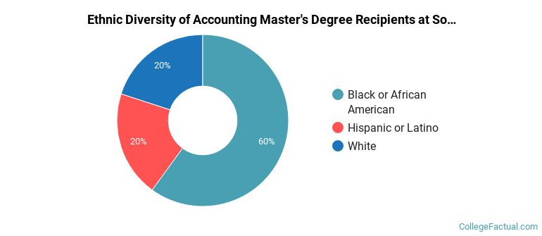 The following table and chart show the ethnic background for students who recently graduated from South University's online programs with a master's in accounting.