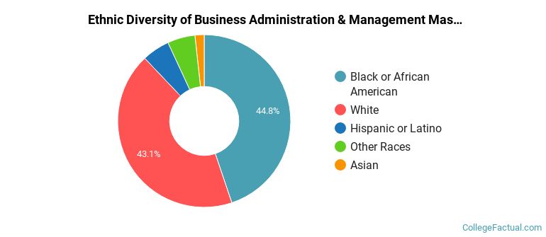 The following table and chart show the ethnic background for students who recently graduated from South University's online programs with a master's in business administration.