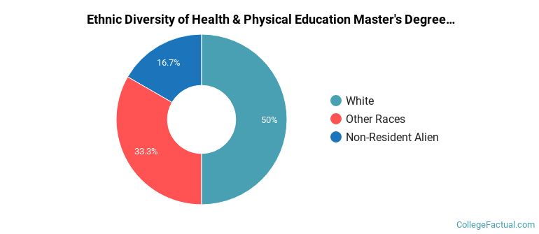 For the most recent academic year available, 60% of phys ed master's degrees went to men and 40% went to women.