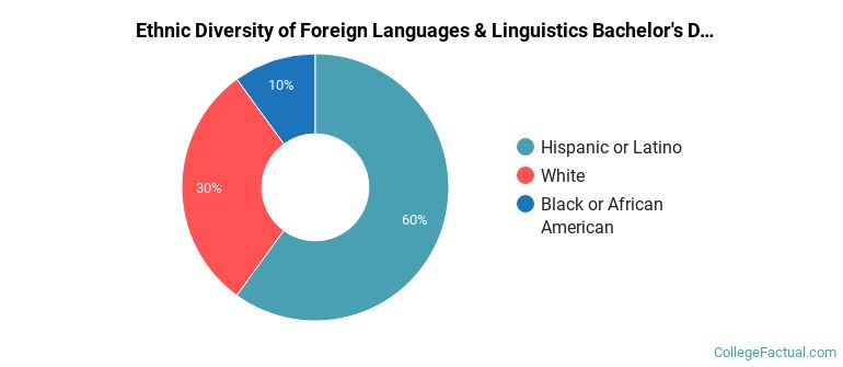 The following table and chart show the ethnic background for students who recently graduated from SUNY Potsdam with a bachelor's in foreign languages & linguistics.