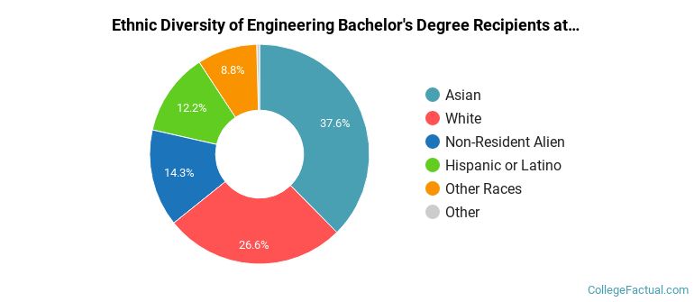 During the 2021-2022 academic year, 730 students graduated with a bachelor's degree in engineering from UCLA. About 68% were men and 32% were women.