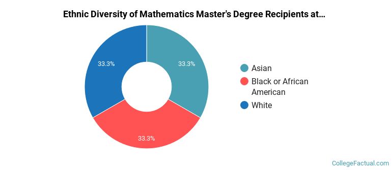 The following table and chart show the ethnic background for students who recently graduated from University of West Georgia with a master's in math.