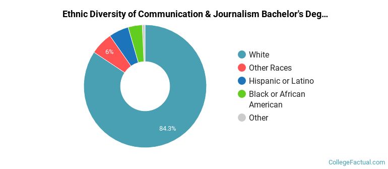 The following table and chart show the ethnic background for students who recently graduated from University of Wisconsin - Oshkosh with a bachelor's in communication & journalism.