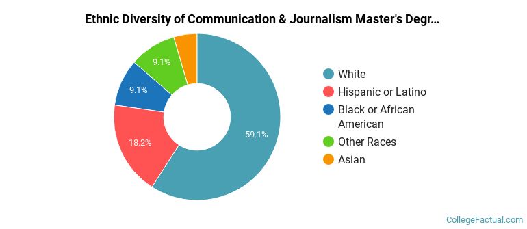 The following table and chart show the ethnic background for students who recently graduated from Westminster College Utah with a master's in communication & journalism.